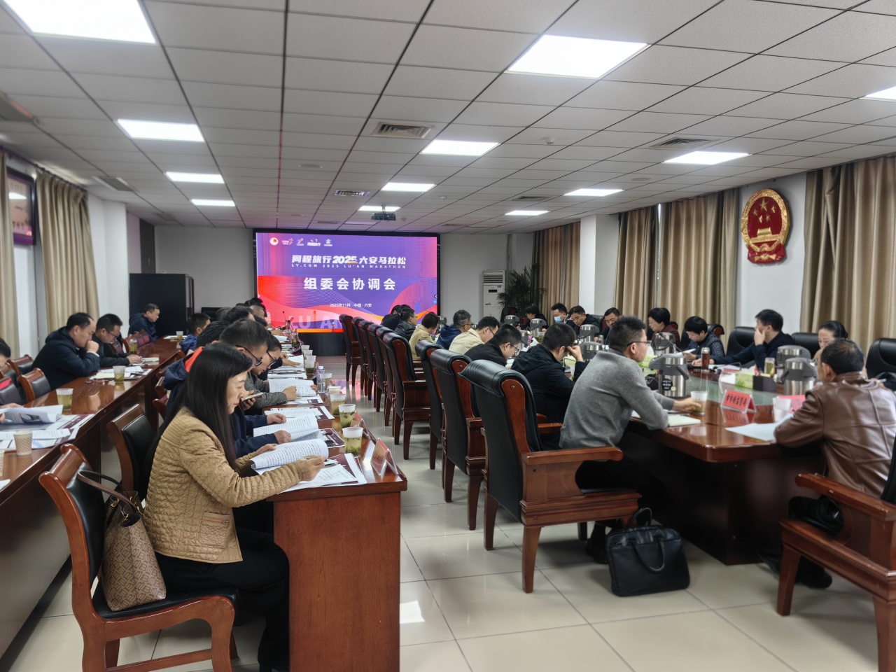 同程旅行2025六安马拉松将于11月30日正式开赛,为切实做好赛事筹备组织工作,保障赛事顺利举行。11月12日下午,2025六安马拉松第一次协调会议在市政府会议室召开,各相关单位负责人参加会议。