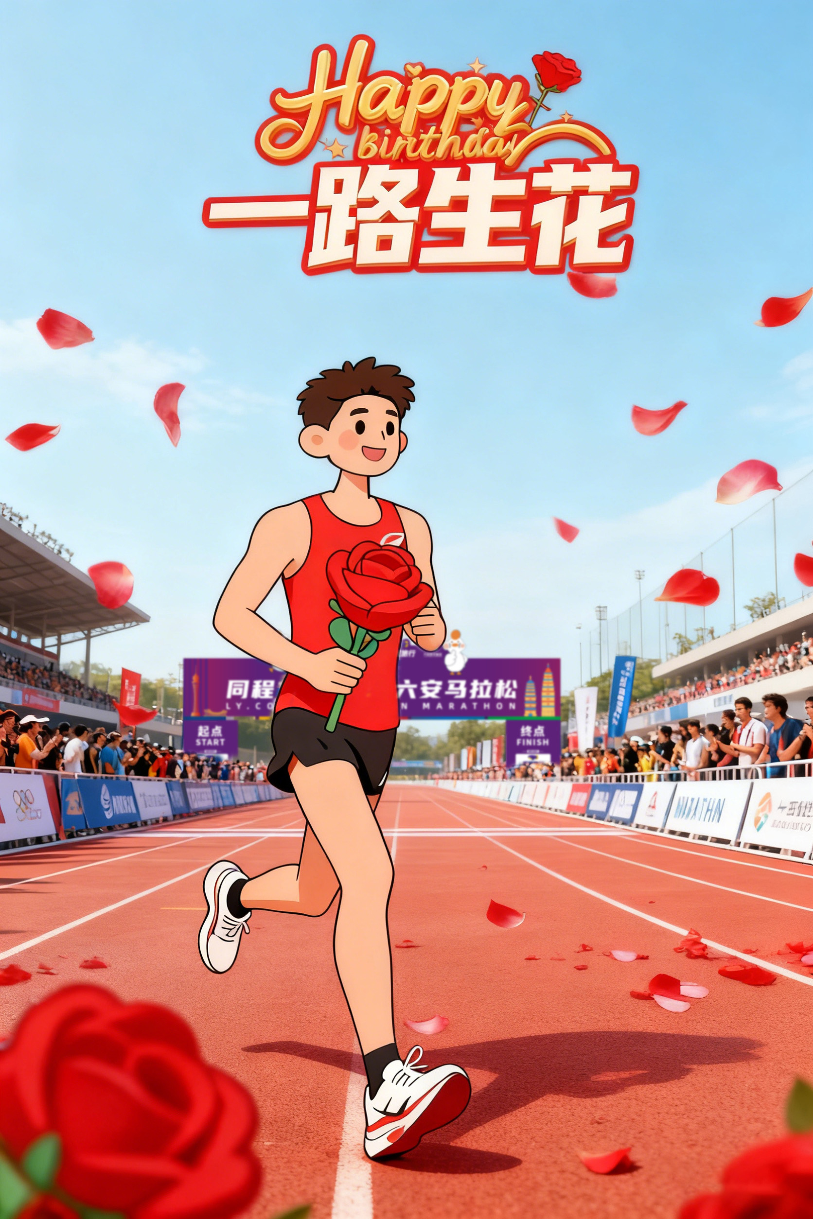 赛事当天,生日跑者完赛后凭借生日号码布即可领取一路生花一枝~
