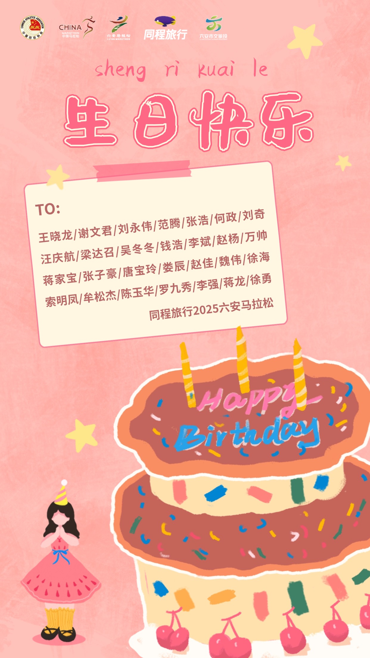 也诚邀赛道上的每一位跑友,为身边同频奔跑的生日跑者拍肩致意、传递祝福,一起定格六安马拉松的美好瞬间,留存满溢温情的奔跑记忆!